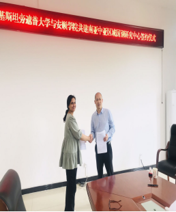 随后,Iftikhar Rukhsana主任与李云根副院长在两校签订的谅解备忘录基础上,签订共建南亚中亚区域国别研究中心的协议合同,建立南亚中亚区域国别研究中心,并挂靠安顺学院人文学院。双方表示研究中心将推进南亚中亚区域国别研究,探索高水平国际型人才培养模式,为相关部门和企业活动提供智力服务。最后,双方交换意见,决定加强人员往来,共塑良好伙伴关系。