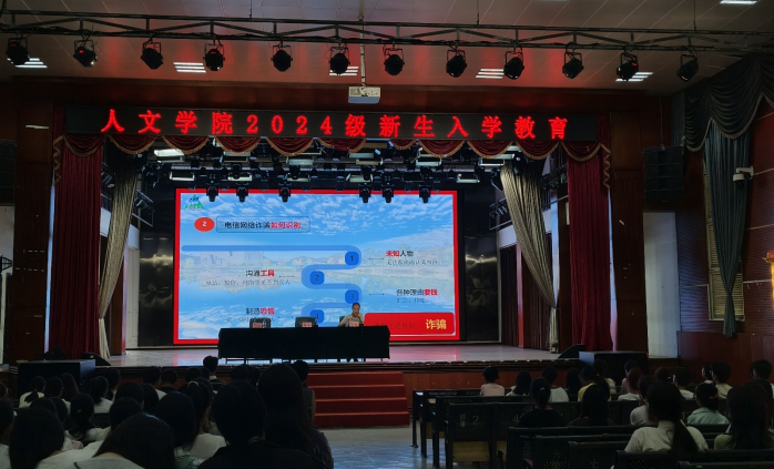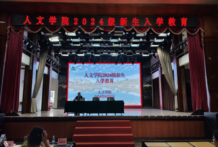2024年9月5日下午,为引导新生尽快适应大学新环境、转变新角色,进一步明确学习目标、合理规划大学生活,我院于学校大礼堂举办2024级新生见面会暨入学教育活动。人文学院党委书记胡蕾、副院长李云根、学生科科长杨正宏、团总支书记伍国桃、新生班班主任及2024级各专业新生参加活动。活动由学院党委副书记杨明主持。