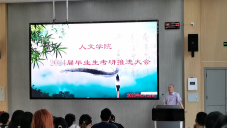 2023年6月28日,人文学院在乐学楼二楼阶梯教室召开“人文学院2024届毕业生考研推进大会”。人文学院院长胡赤兵、人文学院党委书记胡蕾、副院长李云根,部分教师代表、人文学院2024届考研学生参加了本次会议。会议由李云根副院长主持。