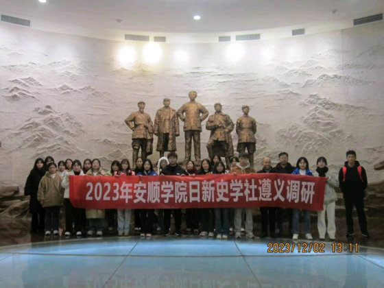 为深入学习了解红色文化,人文学院历史学专业部分学生在孟凡松、陈发政、燕国华等老师的带领下于2023年12月2日至3日赴贵州省遵义市开展红色文化调研活动。