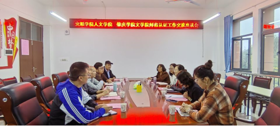 交流会伊始,杨明副书记代表学院向到访的肇庆学院一行表示欢迎,并介绍了人文学院基本情况。随后,双方院长分别介绍了学院的办学历史、专业建设、师资队伍、学生工作等方面的情况。紧接着,双方就学科专业发展、师范专业认证和审核评估等工作进行了深入交流。最后,肇庆学院还对该院的研究生招生工作进行了宣传。