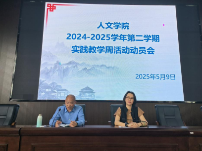按照学校实践教学周的工作部署以及2024版人才培养方案的要求,我院立足各专业实际,精心策划了各项实践教学活动。为保障实践教学周活动的顺利开展,我院于5月9日下午召开了人文学院2024-2025学年第二学期实践教学周活动动员会。人文学院党委书记胡蕾、人文学院副院长李云根、人文学院公共教学科科长万雷、孙利玲与王贤玉等指导教师以及2024级各班学生出席了本次动员会。