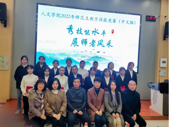 为提升师范生实践教学技能,提高师范生的就业竞争力和专业素养,适应中学课程改革的要求,2023年2月27日下午人文学院在乐学楼阶梯教室J114、J212举办师范生教学技能竞赛。