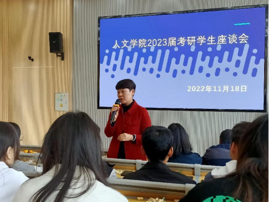 11月18日上午10时,人文学院2023届考研学生座谈会在乐学楼阶梯教室J212隆重举行。参加座谈会的学生有98人,考研指导教师10人。