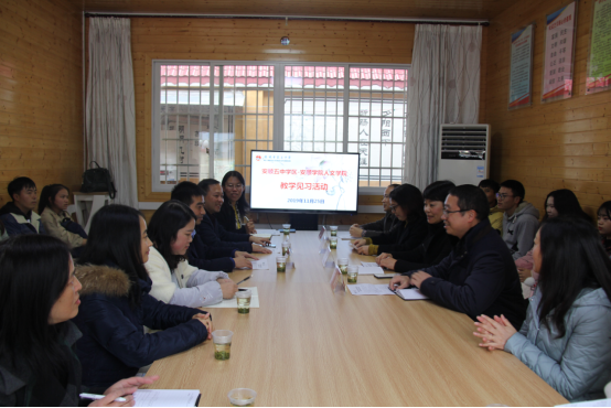 2019年11月25日下午,在人文学院胡赤兵院长的带领下,人文学院公共教学科科长李云根、学生科科长杨正宏及学生代表来到五中参加了教学见习活动见面会。会议由安顺市五中语文高级教师、安顺市初中语文胥炜涛名师工作室主持人胥炜涛老师主持。
