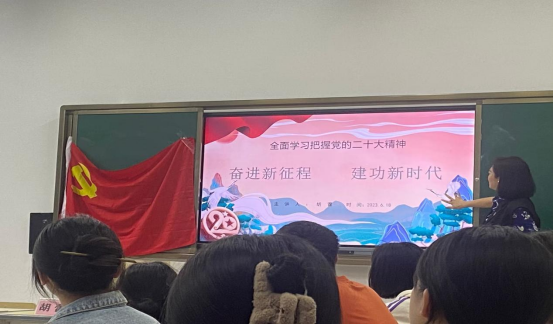 2023年6月19日,人文学院党委书记胡蕾在乐学楼J101为人文学院学生党支部全体党员讲党课。