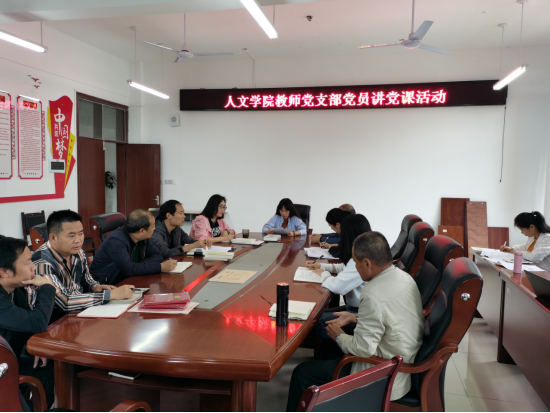 2022年9月23日下午,为进一步加强党员学习教育,丰富党支部组织生活,人文学院教师党支部于党员活动室开展普通党员讲党课活动。党课由教师党支部书记杨明同志主持,教师党员王贤玉同志主讲,教师党支部全体党员参加学习。
