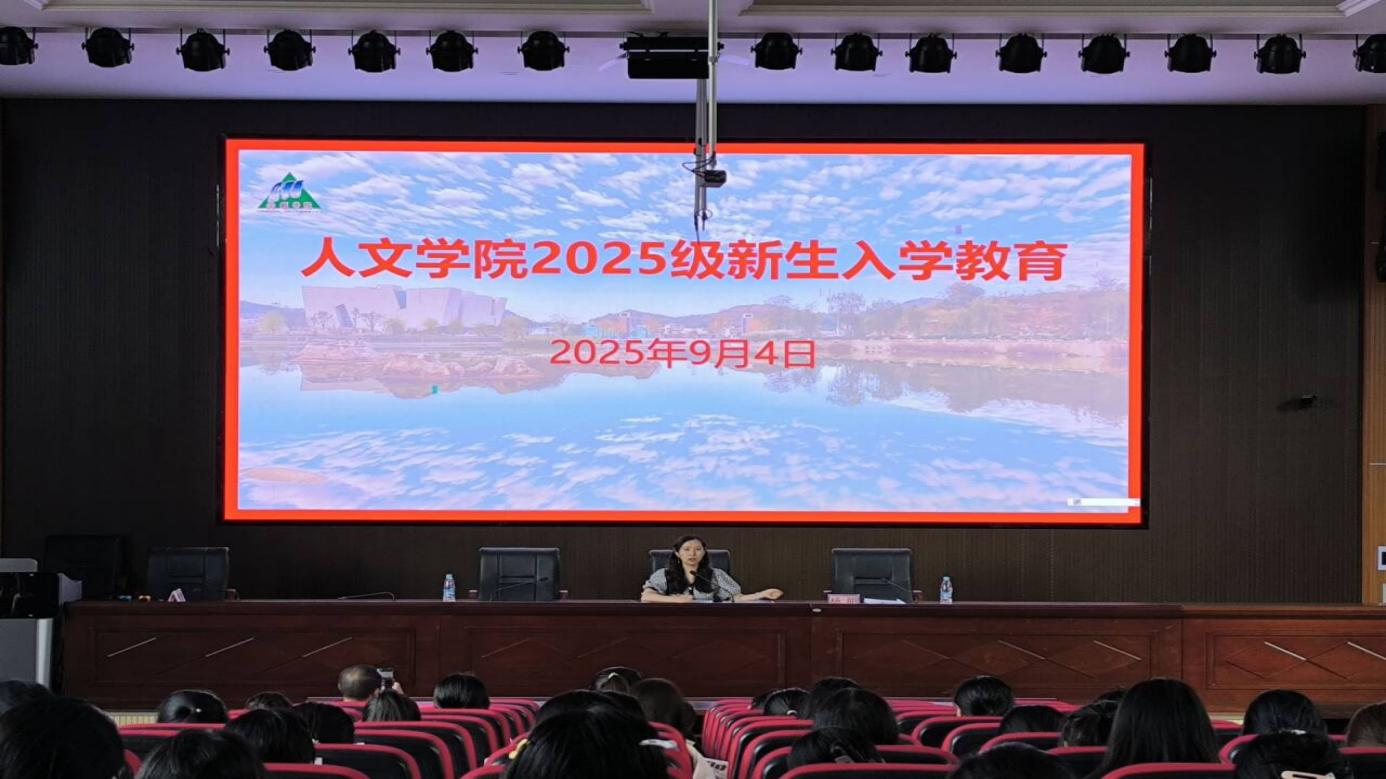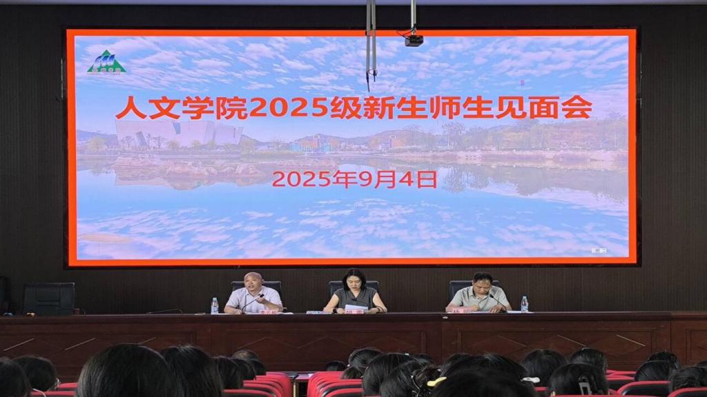 2025年9月4日,人文学院在博学楼A12阶梯教室举行2025级新生见面会暨入学教育活动。学院党委书记胡蕾、副院长李云根,辅导员,新生班主任及2025级新生共同出席活动。会议由党委副书记杨明主持。