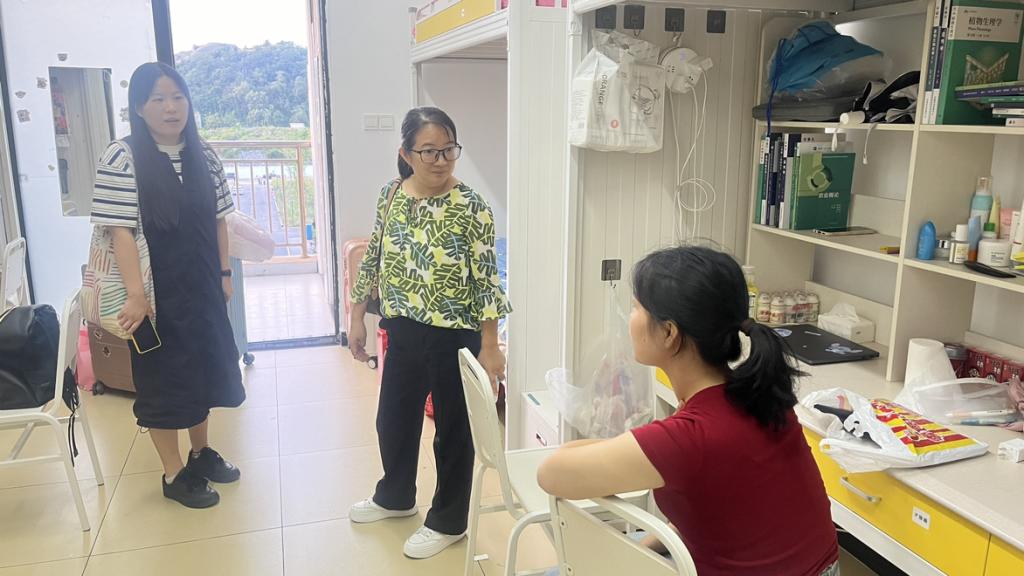 为深入了解2025级新生入学情况,帮助新生尽快适应大学生活,9月2日晚,学院党委书记胡蕾、副院长李云根、党委副书记杨明分组带领辅导员和各新生班主任深入新生宿舍,开展寝室走访和安全排查活动。