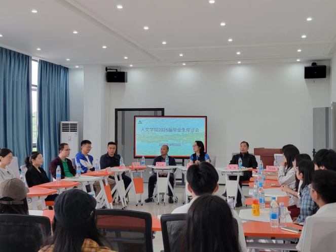 2025年4月22日,人文学院在学校毓秀一站式学生社区活动服务中心“乐知空间”召开2025届毕业生座谈会。学院党委书记胡蕾、副院长李云根及部分教师代表、毕业生代表参加了本次座谈会。会议由党委副书记杨明主持。