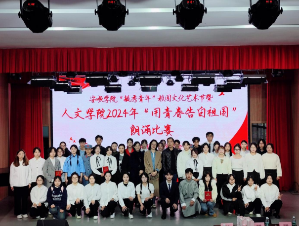 2024年12月2日,人文学院在艺术学院演播厅举办了安顺学院“毓秀青年”校园文化艺术节暨人文学院“用青春告白祖国”朗诵比赛。比赛由人文学院刘蕊杏、张莎莎、丁友锏三位老师担任评委。人文学院党委书记胡蕾、副书记杨明、团总支负责人张瑞欣以及部分学生观看了此次比赛。