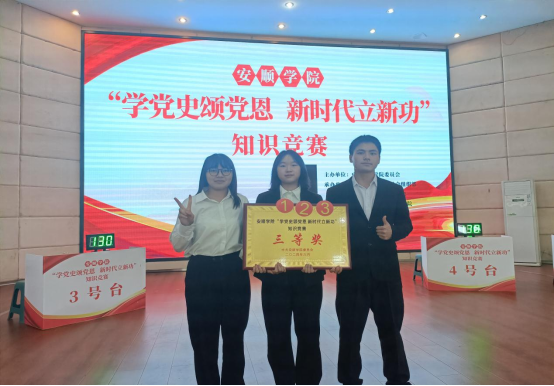 为了深入学习贯彻落实党的二十大和二十届二中全会精神,提升青年学生的历史责任感和使命感,增强历史自豪感和归属感,我院于2024年6月24日下午积极组织学生队伍参加安顺学院“学党史颂党恩 新时代立新功”知识竞赛并荣获三等奖,参赛选手包括2021级历史梅豪、2022级秘书马娟娟和2023级文化遗产曾黎。