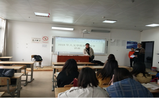 为进一步加强和做好毕业生就业指导工作,教育和引导毕业生正确认识当前的就业形势,树立正确的择业观、就业观,努力提高毕业生的就业能力和就业质量,人文学院汉语言文学班班主任胡德富、专职辅导员李聚刚于2019年4月1日上午8点到12点在特教大楼809为2015级汉语言文学班毕业生分别作了题为《如何提高应聘技巧》和《如何选择人生的第一份工作》的就业培训讲座。