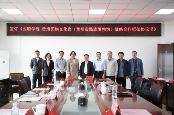 座谈会由杜志明副校长主持。张来副校长致辞,对贵州省民族博物馆刘国玉馆长一行的到来致以诚挚欢迎,简要介绍了安顺学院的办学历程、取得的成绩以及面临的困难,重点阐释了我校目前更名转型发展以及学科专业建设的基本情况,表达了加强双方合作的期望。随后,双方出席人员围绕人才培养、科研合作、学科建设、博物馆建设、铸牢中华民族共同体意识教育等方面进行了热烈交流。在前期协商一致的基础上,双方正式签署了《安顺学院贵州民族文化宫(贵州省民族博物馆)战略合作框架协议书》。最后,在杜志明副校长的陪同下,刘国玉馆长一行参观了我校地质博物馆。