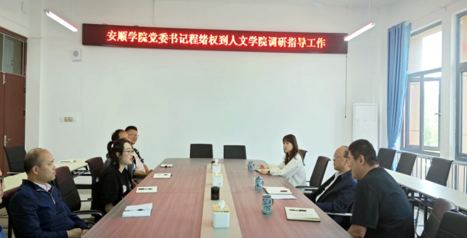 2025年5月13日上午,安顺学院党委书记程绪权到人文学院调研指导工作,党政办公室副主任翟精武等陪同调研。人文学院领导班子全体成员、科级干部及部分教师代表参加此次调研座谈。会议由学院党委书记胡蕾主持。