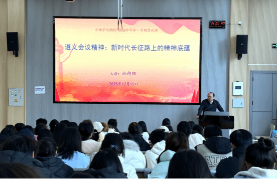 为深入落实立德树人根本任务,引导师生赓续红色血脉,2025年12月16日,安顺学院党委常委、副校长孙向阳走进人文学院,以“遵义会议精神:新时代长征路上的精神底蕴”为主题,为全院师生带来一堂内涵丰富、激荡人心的思政课。学院领导班子、教师党员及学生代表聆听学习。