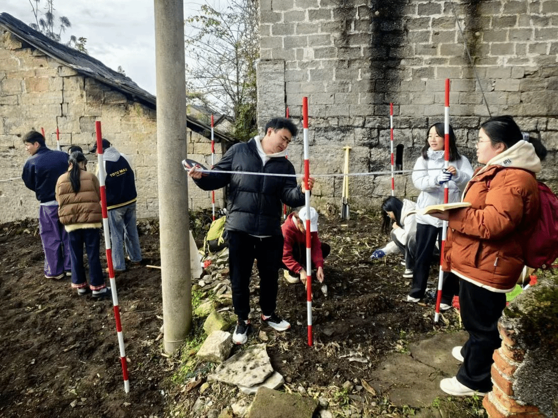 为深化文化遗产专业实践教学,将课堂理论与田野考古深度融合,2025年11月19日至20日,人文学院组织23级文化遗产专业全体学生,赴西秀区轿子山镇张官村开展为期两天的野外考古实训活动。此次实训以张官村古村落为核心考察对象,学生在实地勘探中锤炼专业技能,感受黔中地区深厚的历史文化底蕴。