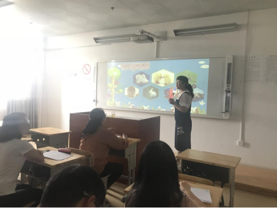 姚蕾老师给大家带来的是写话训练示范课《我想写的小动物》。姚老师通过设“巧嘴关”和“妙笔关”将同学们带入了小学写作的课堂中,让同学们现场进行了一个二年级作文的写作。同学们和姚老师积极互动,现场气氛活跃。人文学院李华桦老师对示范课进行了点评,她希望同学们走上实习岗位时能够淡定从容,做一名合格的语文教师。