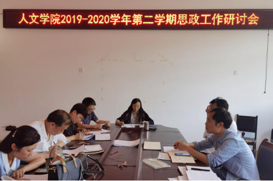 2020年6月16日下午,人文学院在会议室召开了2019-2020学年第二学期思政工作研讨会,人文学院辅导员、班主任及全体行政人员参加了会议。会议由人文学院党委书记蒋晓兰主持。