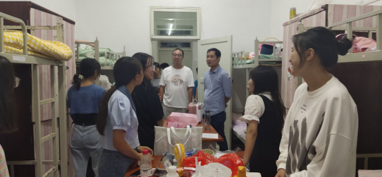 在走访我院新生宿舍的过程中,学院领导及老师关切地询问了新生们的住宿与生活情况、存在困难、对新学期的期待等,并耐心解答了同学们的疑惑与问题,鼓励他们尽快融入班级、适应大学生活。各位领导在向同学们表达关心的同时也提出殷切希望,大学是人生的新阶段,一定要将学业放在第一位,嘱咐同学们要早树立目标,在今后四年里努力学习,并在保证学业的基础上积极参加各项活动;同时也要听从学校的安排,坚持做好疫情防控工作,养成良好的学习与生活习惯。
