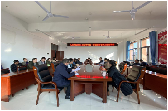 2021年12月23日下午,人文学院召开2021-2022学年第一学期期末考试工作部署会。会议由胡赤兵院长主持,人文学院期末有监考任务的全体专兼职教师出席会议。