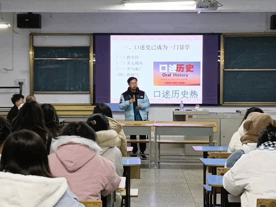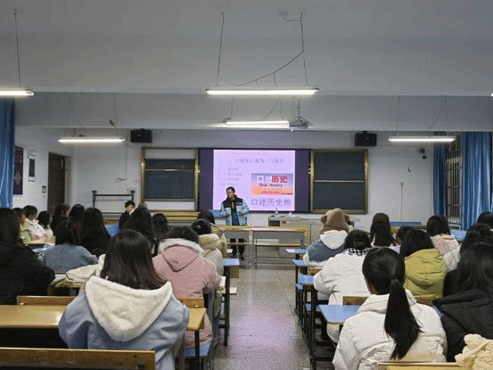2022年12月1日晚,人文学院日新史学社在博学楼0B22教室举行“乡村教师口述史”交流活动。出席本次交流活动的有人文学院副院长李云根老师、历史教研室主任燕国华老师以及日新史学社成员近百人。