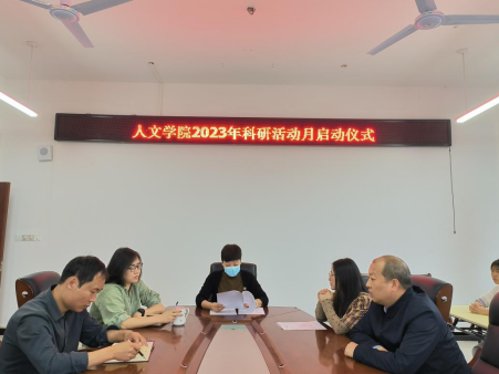 会中,胡赤兵院长宣读了《安顺学院2023年科研活动月工作方案》及《人文学院2023年科研活动月实施方案》,介绍了本次活动的时间、目标和任务、意义等,强调了我院在学术会议、学术讲座、专题培训、科研政策宣传等方面的活动安排。
