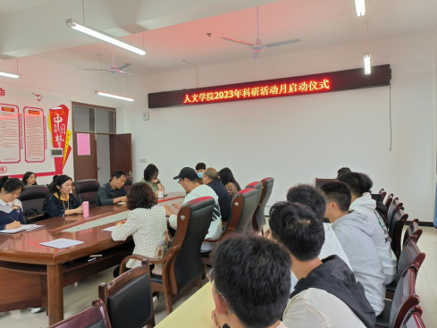 2023年5月8日上午,人文学院2023年科研活动月顺利启动。人文学院院长胡赤兵、党委书记胡蕾、党委专职副书记杨明出席会议,师生代表三十余人参加会议。