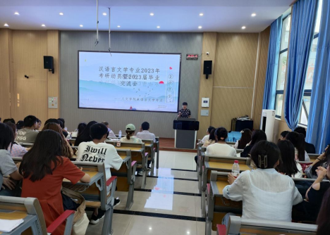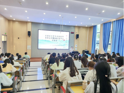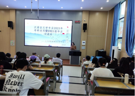 2023年5月29日,人文学院汉语言文学专业2023年考研动员会暨2023届毕业交流会在乐学楼114教室隆重举行。人文学院党委书记胡蕾、院长胡赤兵、副院长李云根、教育学院副院长余治平、人文学院教师李聚刚、2020级汉语言文学全体学生及相关专业学生参加会议。会议由2020级汉语言文学班主任杨新友老师主持。