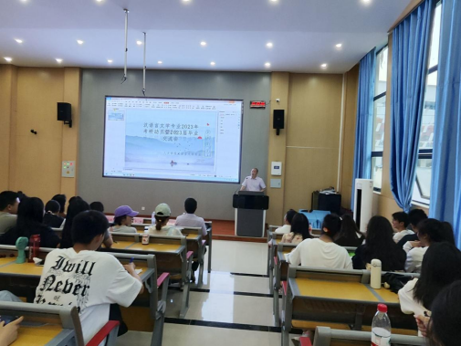 会议第一阶段,胡赤兵院长总结了2023年人文学院考研情况,展望未来考研形势,强调考研贵在坚持,鼓励同学们砥砺奋进。胡蕾书记指出学习就像一位苦行僧,需要不断地努力坚持,同学们终会看到日出东方的美丽。李云根副院长、余治平副院长、李聚刚老师从不同角度发表了热情洋溢的讲话,给同学们加油、鼓劲。