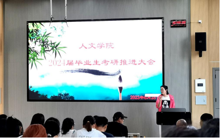 2023年6月28日,人文学院在乐学楼二楼阶梯教室召开“人文学院2024届毕业生考研推进大会”。人文学院院长胡赤兵、人文学院党委书记胡蕾、副院长李云根,部分教师代表、人文学院2024届考研学生参加了本次会议。会议由李云根副院长主持。