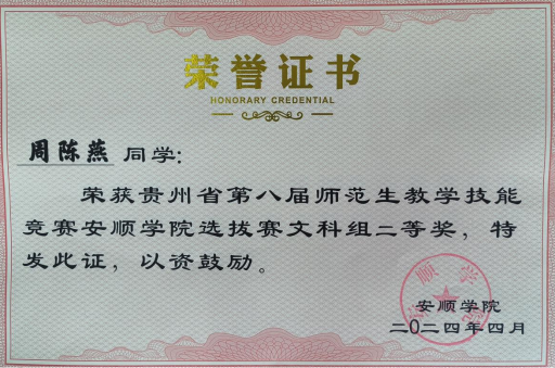 (周陈燕获奖证书)