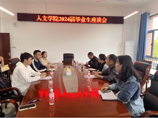 2024年5月20日下午,人文学院在乐学楼三楼会议室召开2024届毕业生座谈会。人文学院党委书记胡蕾、副院长李云根、党委副书记杨明及部分教师代表、毕业生代表参加了本次座谈会。会议由杨明副书记主持。
