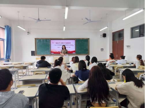 2024年5月27日下午,人文学院党委书记胡蕾在乐学楼J309为人文学院学生党员讲纪律党课。人文学院学生党支部全体党员参加,党课由学生党支部书记曾烁主持。