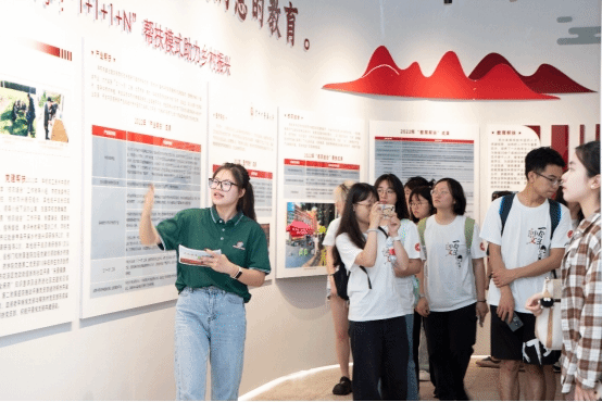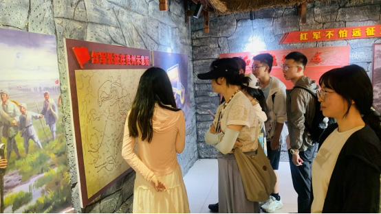 在贵州省高校乡村振兴研究中心理想信念教育基地,师生深入了解我省各高校助力乡村振兴的案例,接受了一场以高等教育助力乡村振兴为主题的沉浸式体验教学活动。
