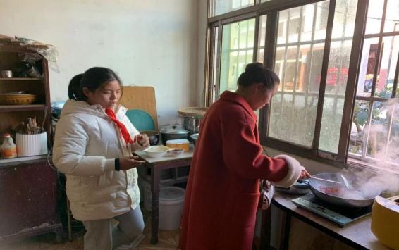 课堂之外,林小素常常到留守儿童家里给孩子们做晚饭(右为林小素)